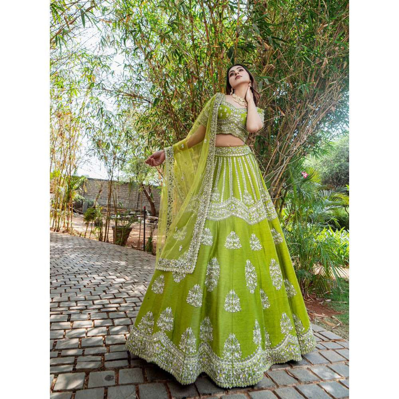 Chartreuse Lehenga with Blouse and Dupatta (Set of 3)