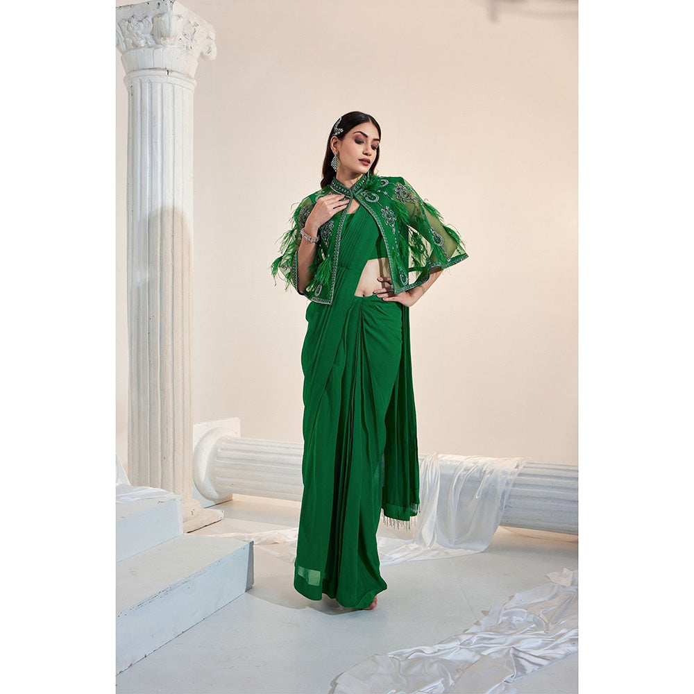 Tahira Feather Cape with Pre Drape Saree and Stitched Blouse