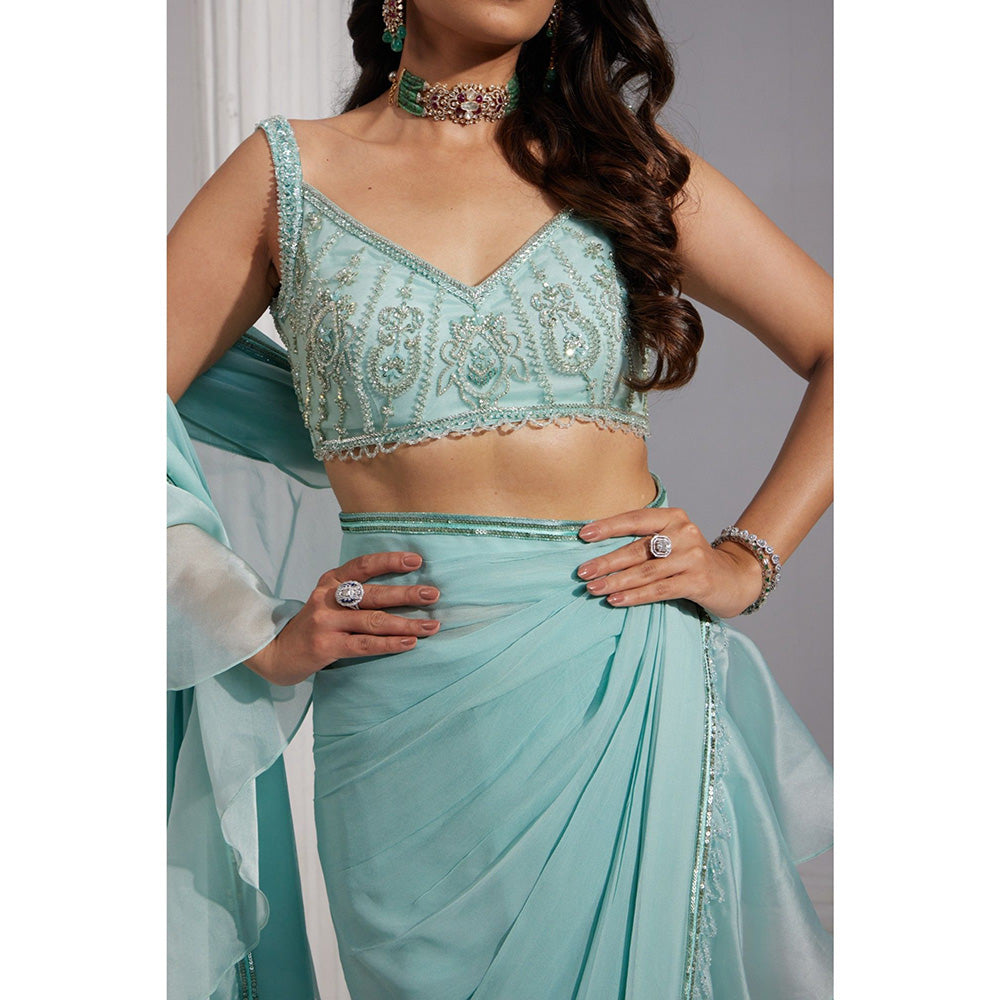 Swati Wadhwani Ziba Organza Frill Pre Drape Saree with Stitched Blouse