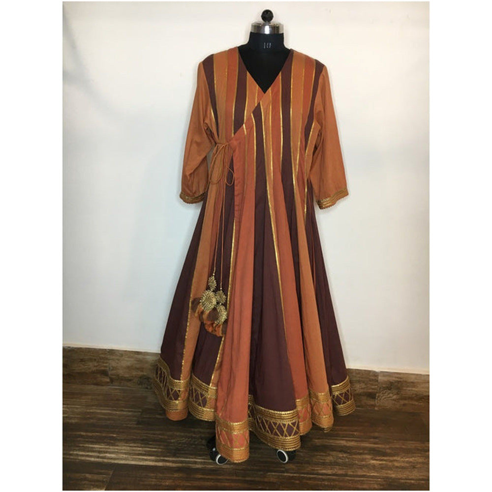 Description : Taraasi Mahua' Shades Of Brown Mulmul Cotton Kalidar Angrakha (XS)