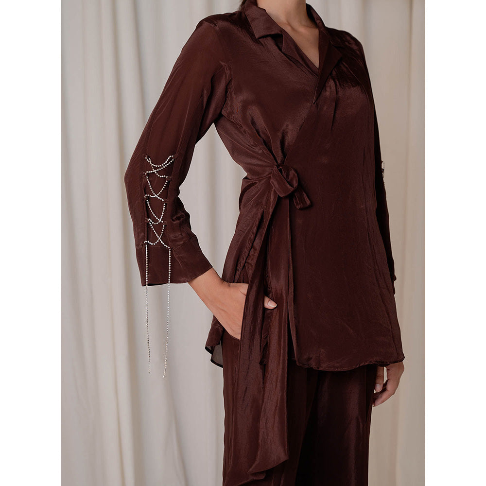 Description : Elevate Your Style with This Wrap-Around Coat Style Top and Coordinating Bottom. The Top Is Designed with Chic Criss-Cross Stone Detailing On The Sleeves, Adding A Touch Of Glamour To Its Sophisticated Silhouette.