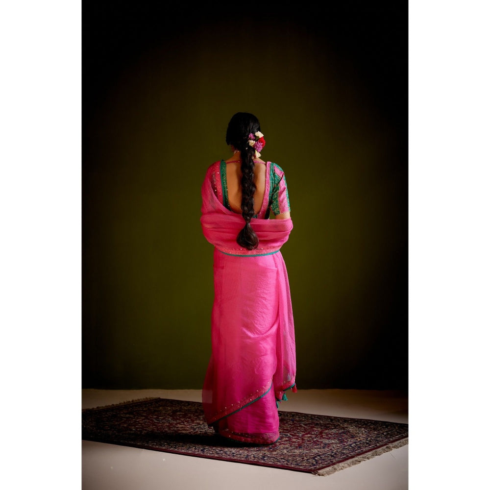 Vashisht Guru Dutt Pink Tassels Embroidered Saree with Stitched Blouse