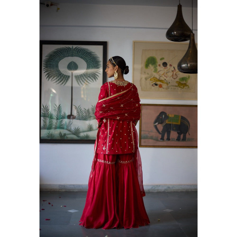 Vashisht Guru Dutt Red Gulab Kurta with Sharara and Dupatta (Set of 3)