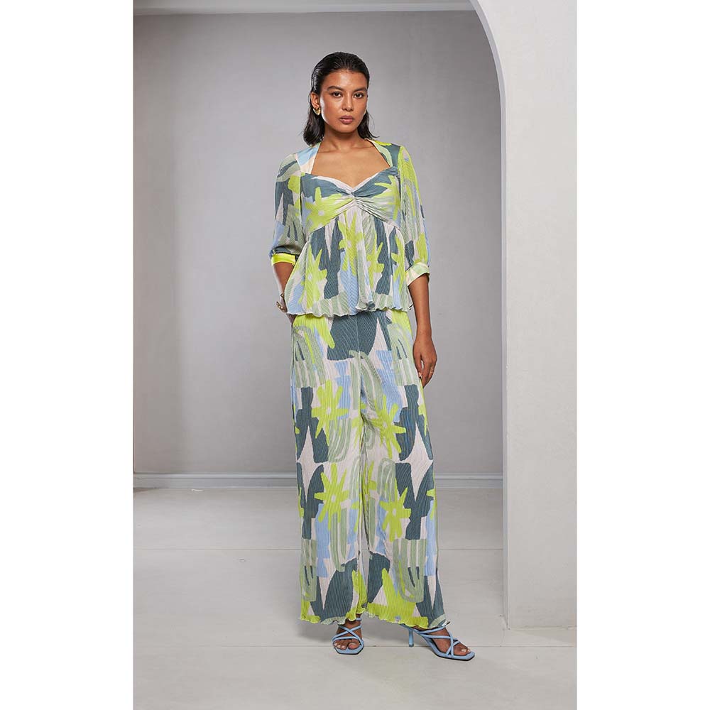 Description : A Peplum Set with Rushing Detail On The Yoke Paired with Printed Palazzo