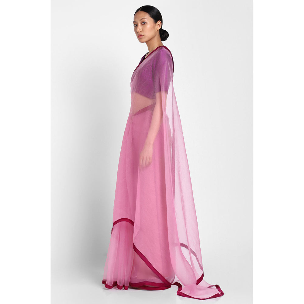 Via East Pink Organza Saree with Satin Piping with Unstitched Blouse