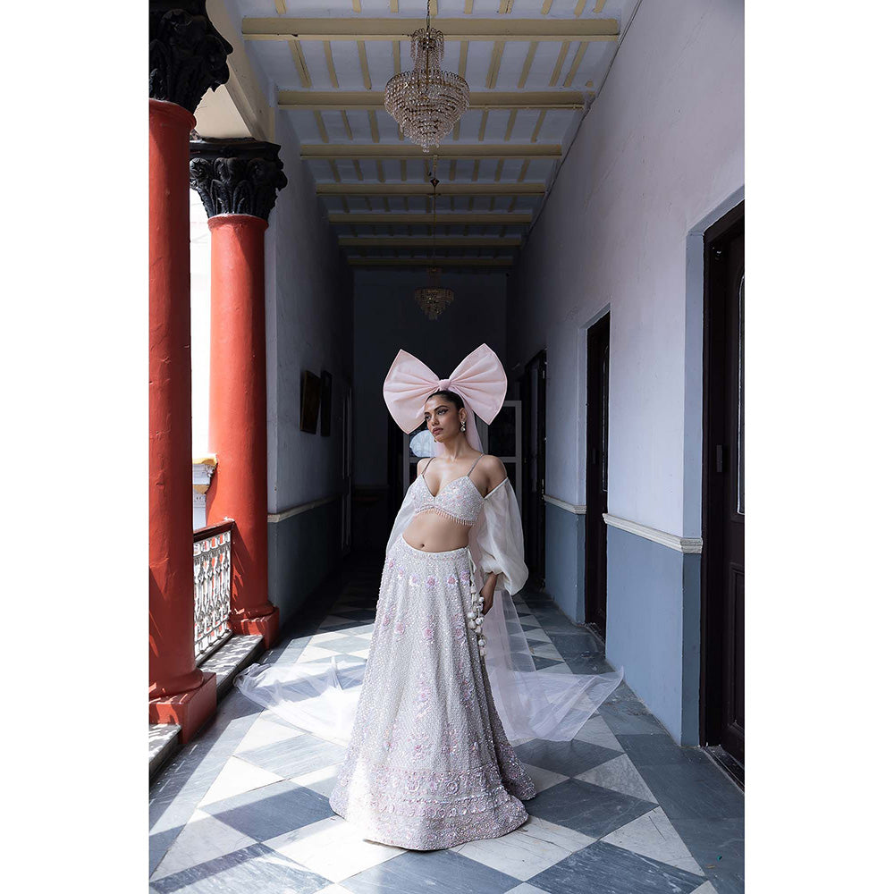 White Rose Enchantment Lehenga with Blouse and Dupatta (Set of 3)