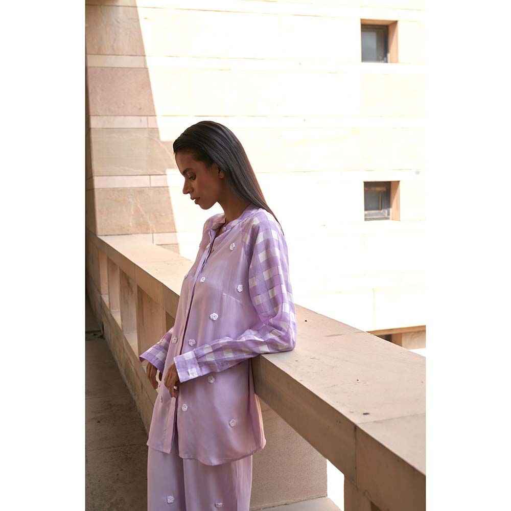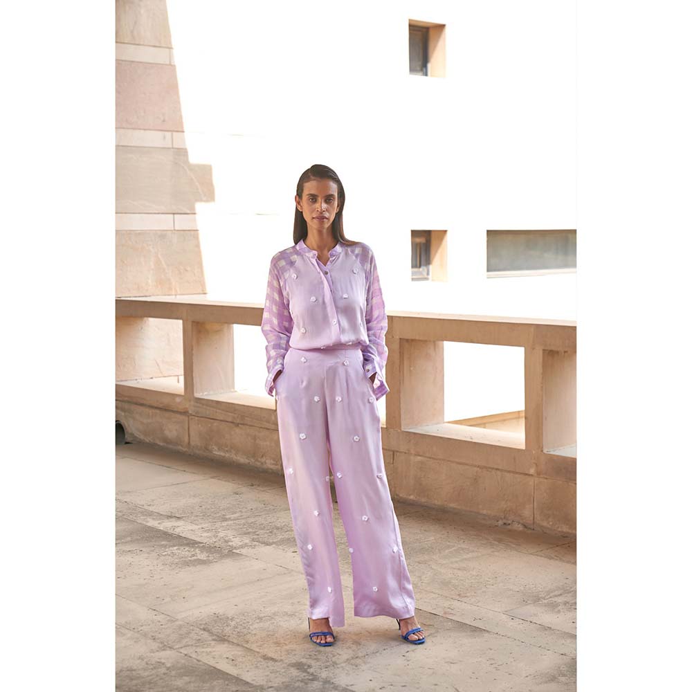 Description : Shirt features a front placket, shirt collar and contrasting Raglan sleeves highlighted with hand- made crochet flowers. Pants feature an elasticated back waist, front zipper and cross pockets. Tailored to sartorial perfection from premium quality fabric, it assures a soft and soothing touch against the skin. The exquisite silhouette adds to its appeal.