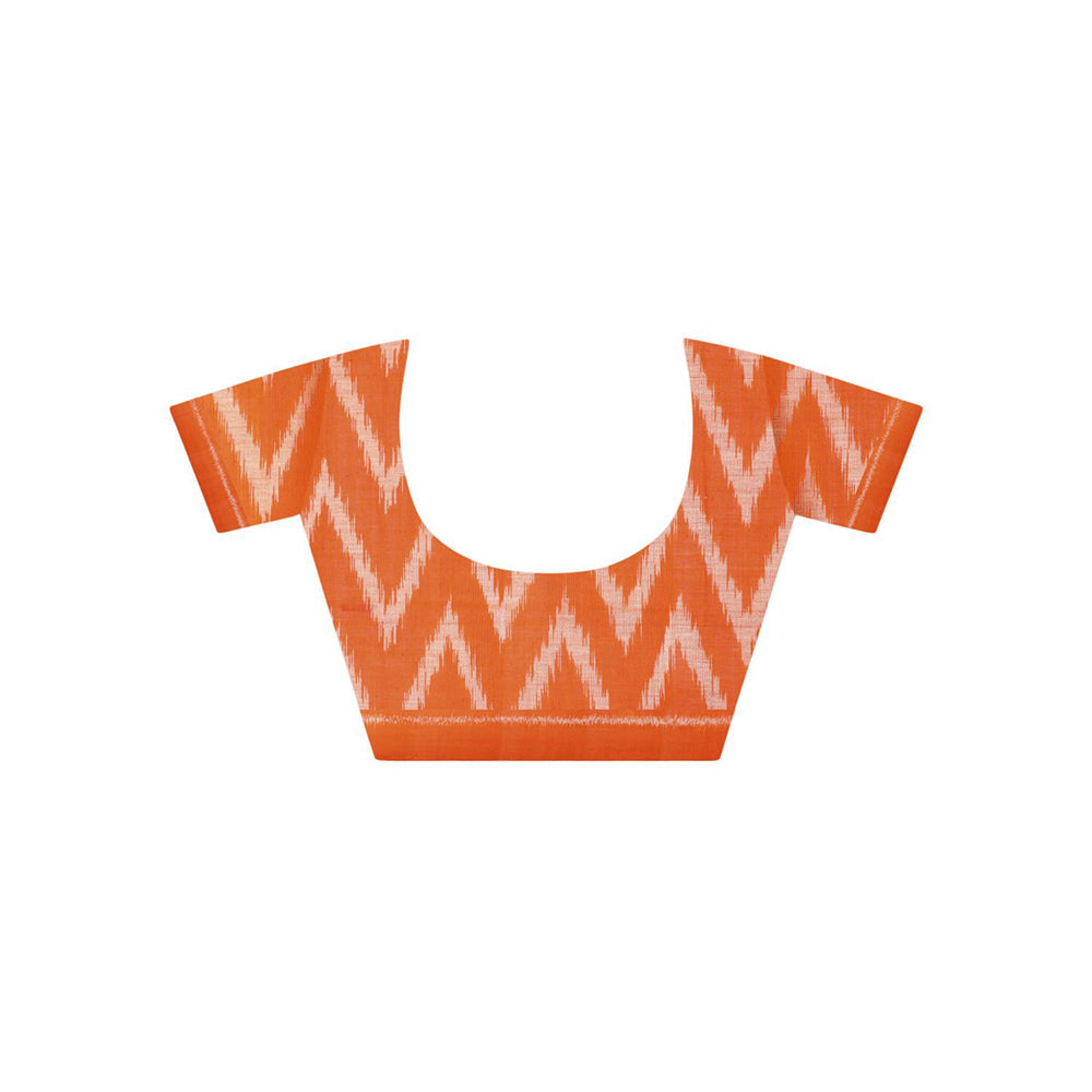 Handloom Ikat On Gas Mercerised Cotton Saree without Blouse