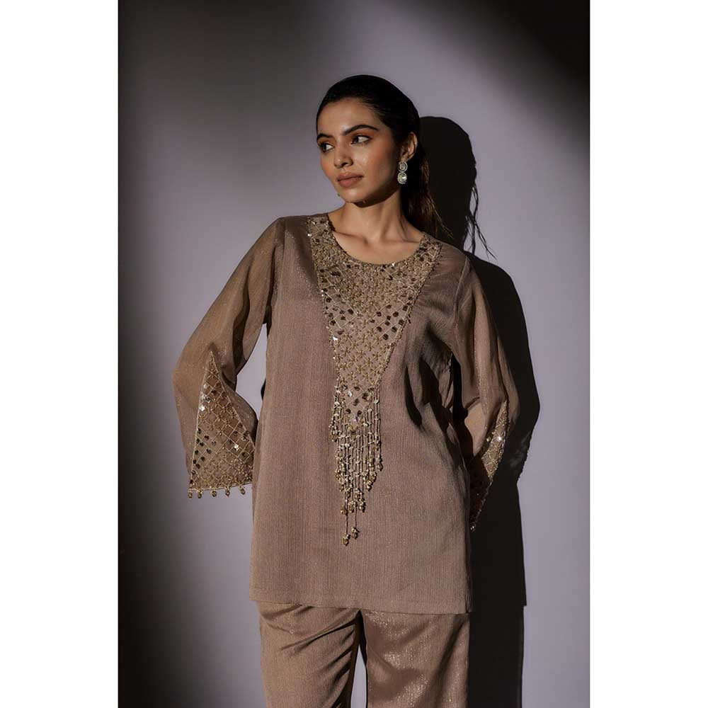Ajiesh Oberoi Brown Emily Front Neck Embroidered Co-Ord (Set of 2)