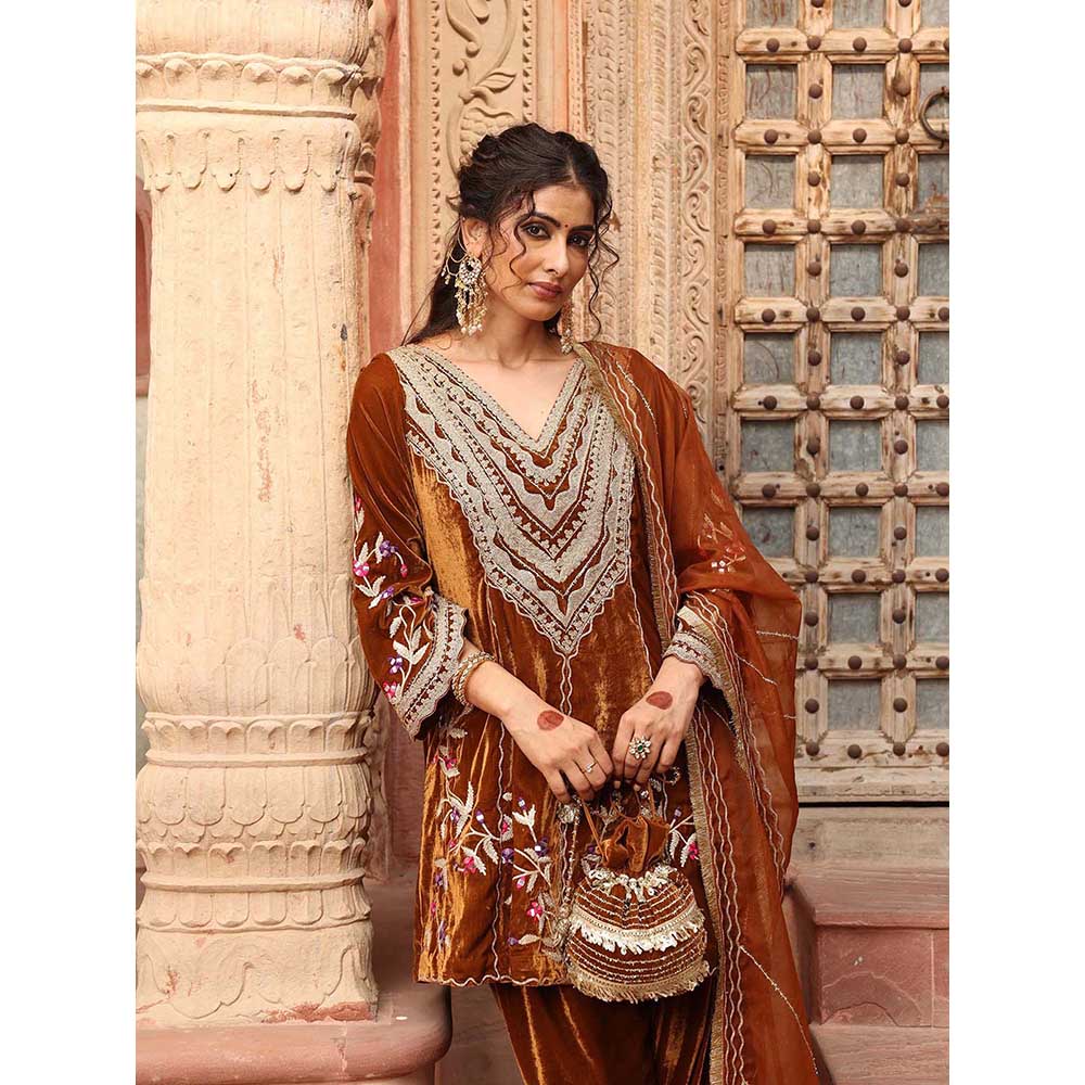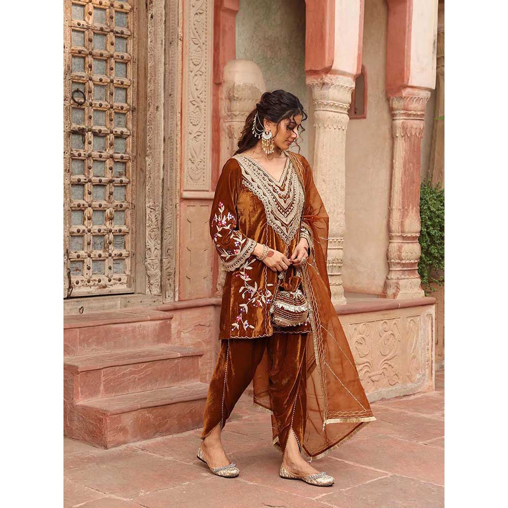 Honey Gold Dhoti with Short Kurta and Dupatta (Set of 3)