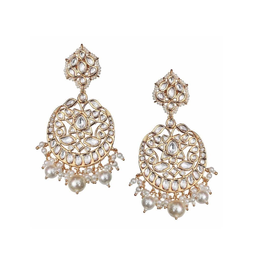 Akulya Jewels Gold Finish White Kundan Chandbalis