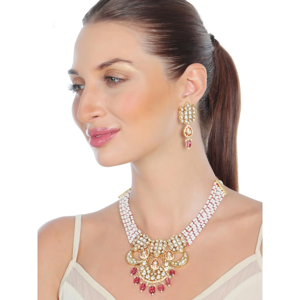 Akulya Jewels Ruby Minakari Kundan Necklace (Set of 2)