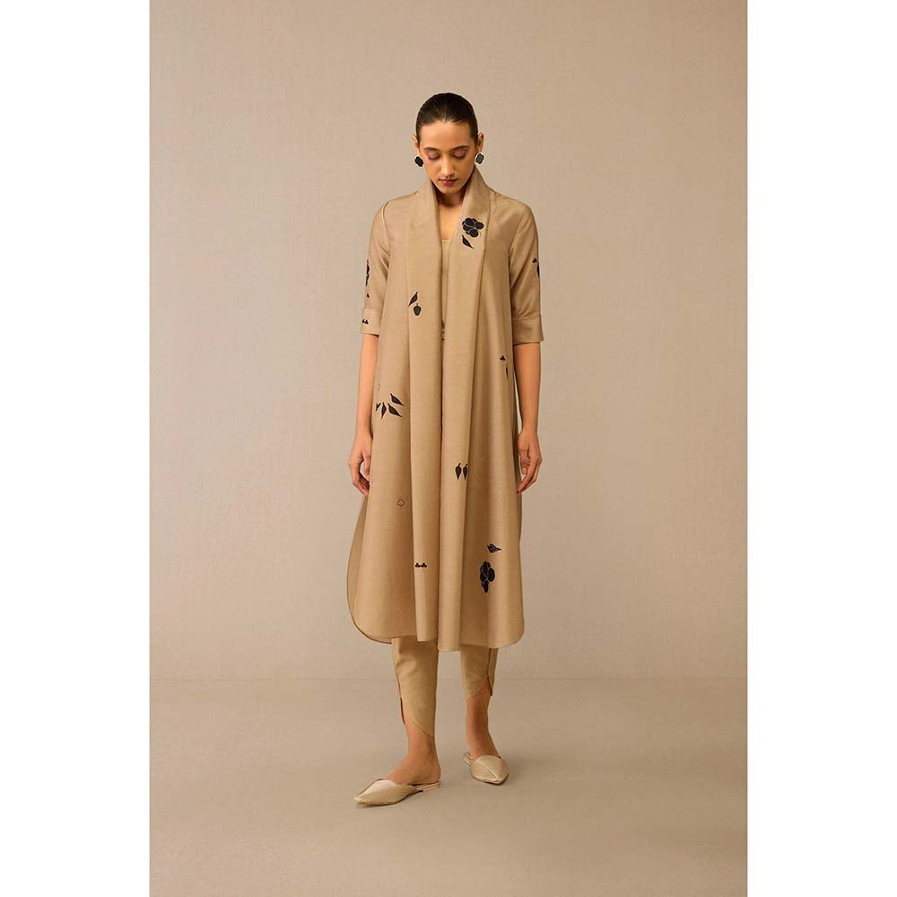 Description : Light As A Spring Breeze, The Dinar Throw Set Captures The Essence Of Effortless Grace. Crafted From Lustrous Beige Chanderi, Its Flowing Throw Features Delicate, Story-Like Prints Of Birds and Blooming Flowers. Paired with Slim Dhoti-Inspired Pants, This Set Is Perfect For Sunny Days and Balmy Evenings. Wear It with Our Ninah Mules In Gunmetal.