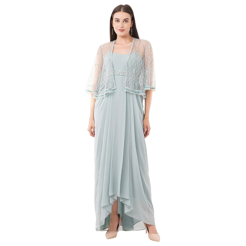 Blue Embellished/Sequined Delilsh Maxi Dress with Cape (Set of 2)