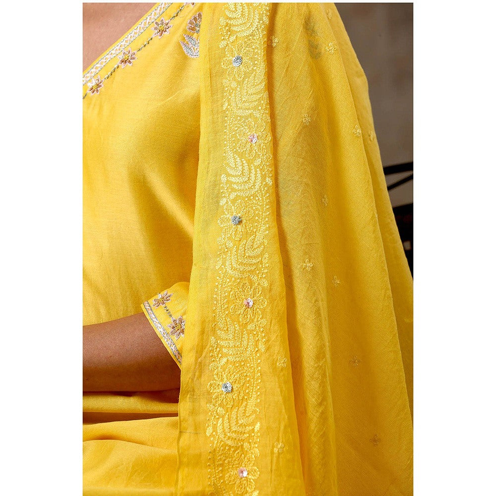 Yellow Color Hand Embroidered Chanderi Silk Kurta with Pant & Dupatta (Set of 3)