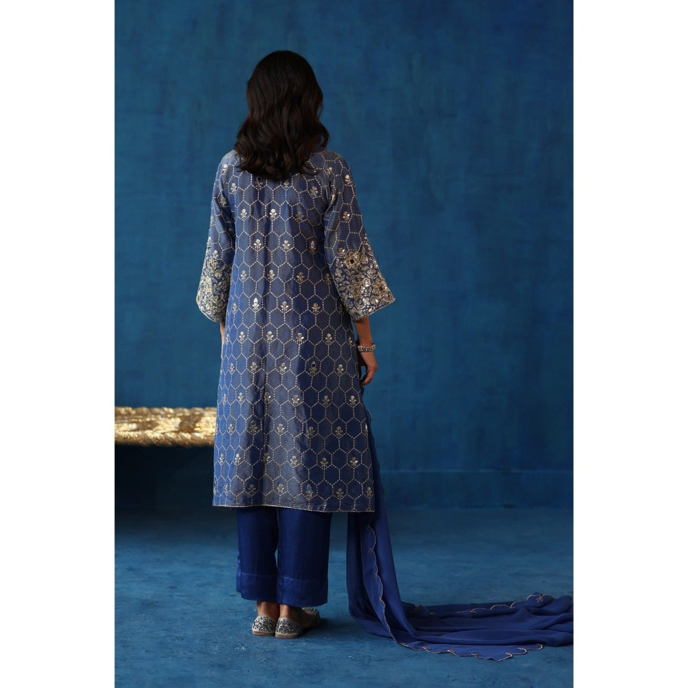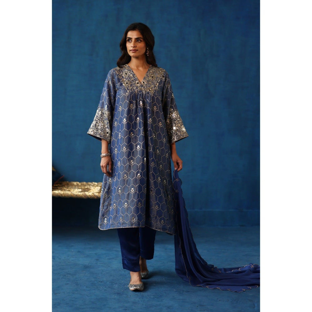 Begum Pret Blue Kaanji Kurta & Pant with Dupatta (Set of 3)