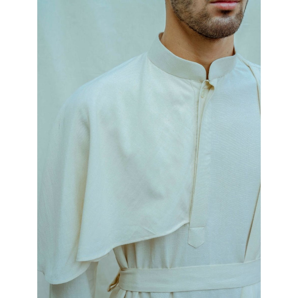 Cotton X Linen Cape Style Kurta With Pajama In Off White (Set of 2)