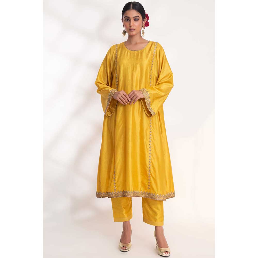 CHHAYA MEHROTRA Yellow Kanak Kurta with Pant (Set of 2)