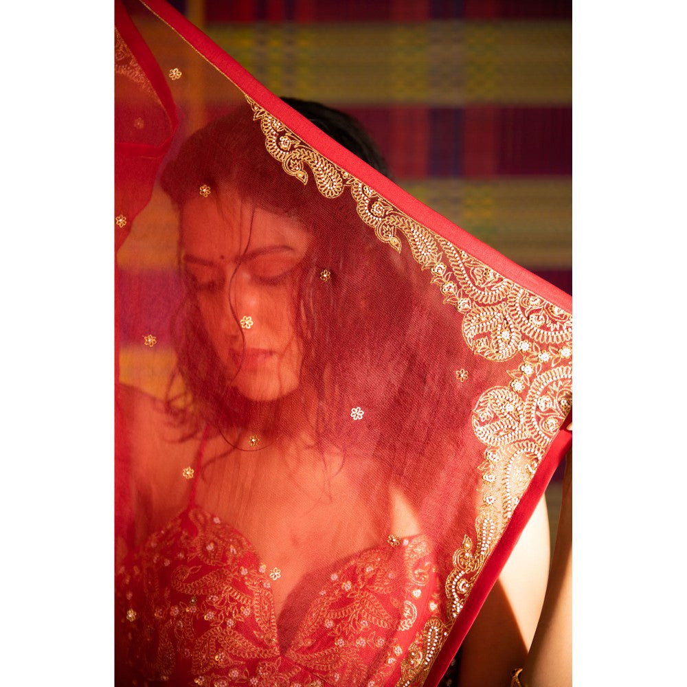 DEEPTHEE Sita Hand Embroidered Kali Lehenga with Blouse & Dupatta (Set of 3)