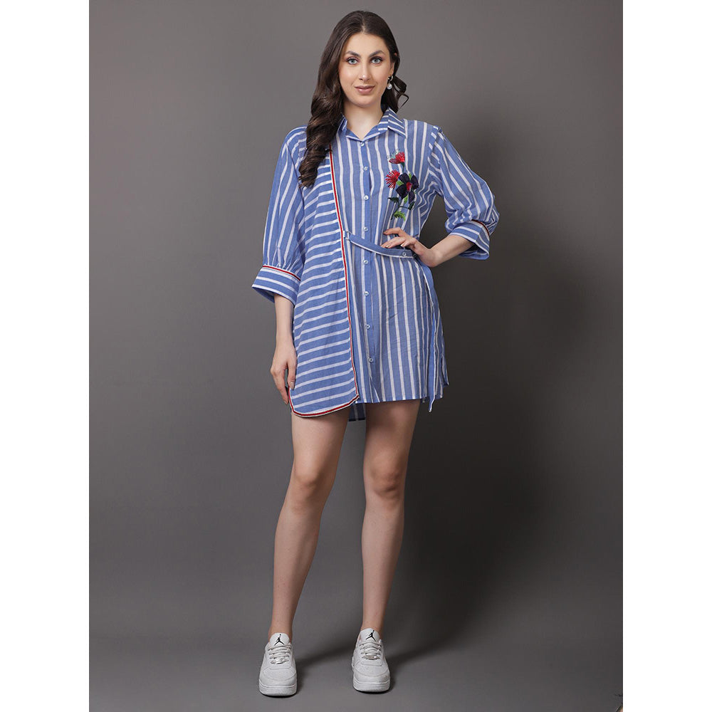 Description : Blue Stripes Embroidered Dress
