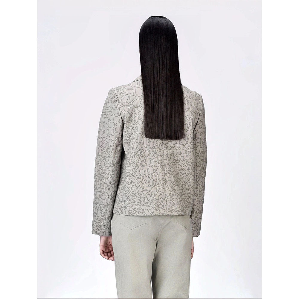 Genes Lecoanet Hemant Women Grey Cotton Notched Lapel Printed Blazer