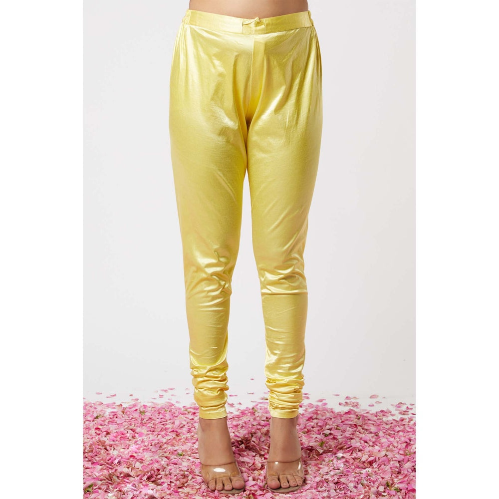 Description : With delicate motifs ona yellow cotton, this long overlapping anarkali is paired with churidar anda aa beautifully embellished dupatta. the neckline is enhanced with gota, mirror and thread embroidery. the kalis down the waistline gives a flow to the ensemble making it fun to wear on any occasions.
