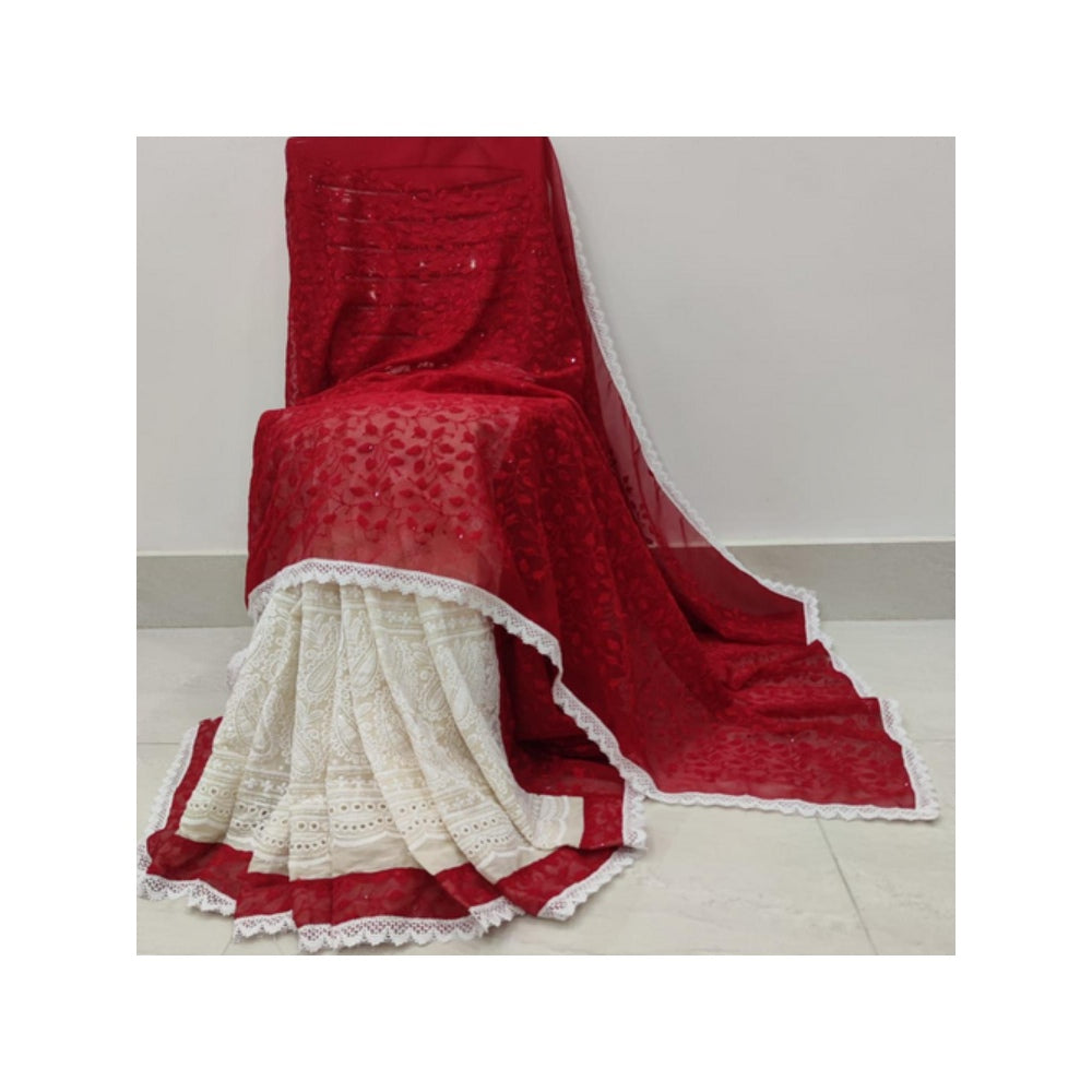 Isadora Life Womens Embroidered Sequined Multi-Color Pre-Draped Saree With Unstitched Blouse