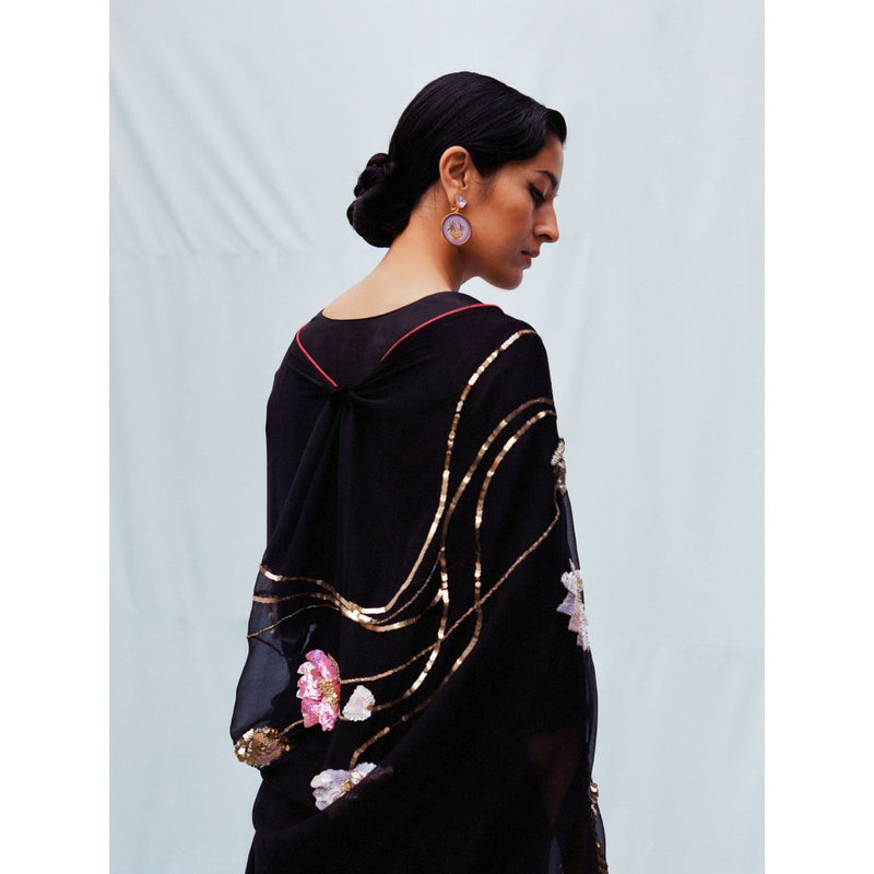 Black Manipura Lotus Series Saree without Blouse