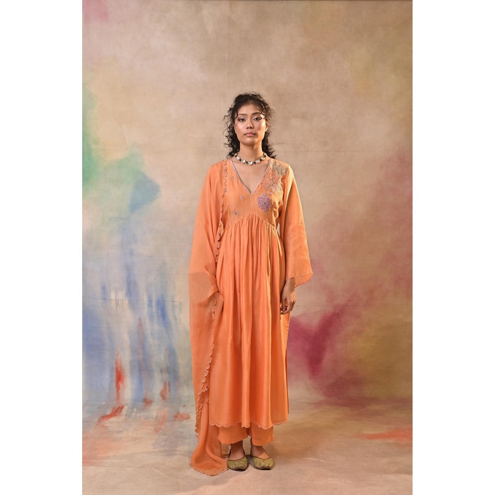 Peach Floral Embroidered Kurta with Palazzo and Dupatta (Set of 3)