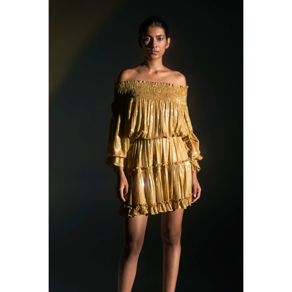 KANGANA TREHAN Gold Off-Shoulder Sequinned Dress