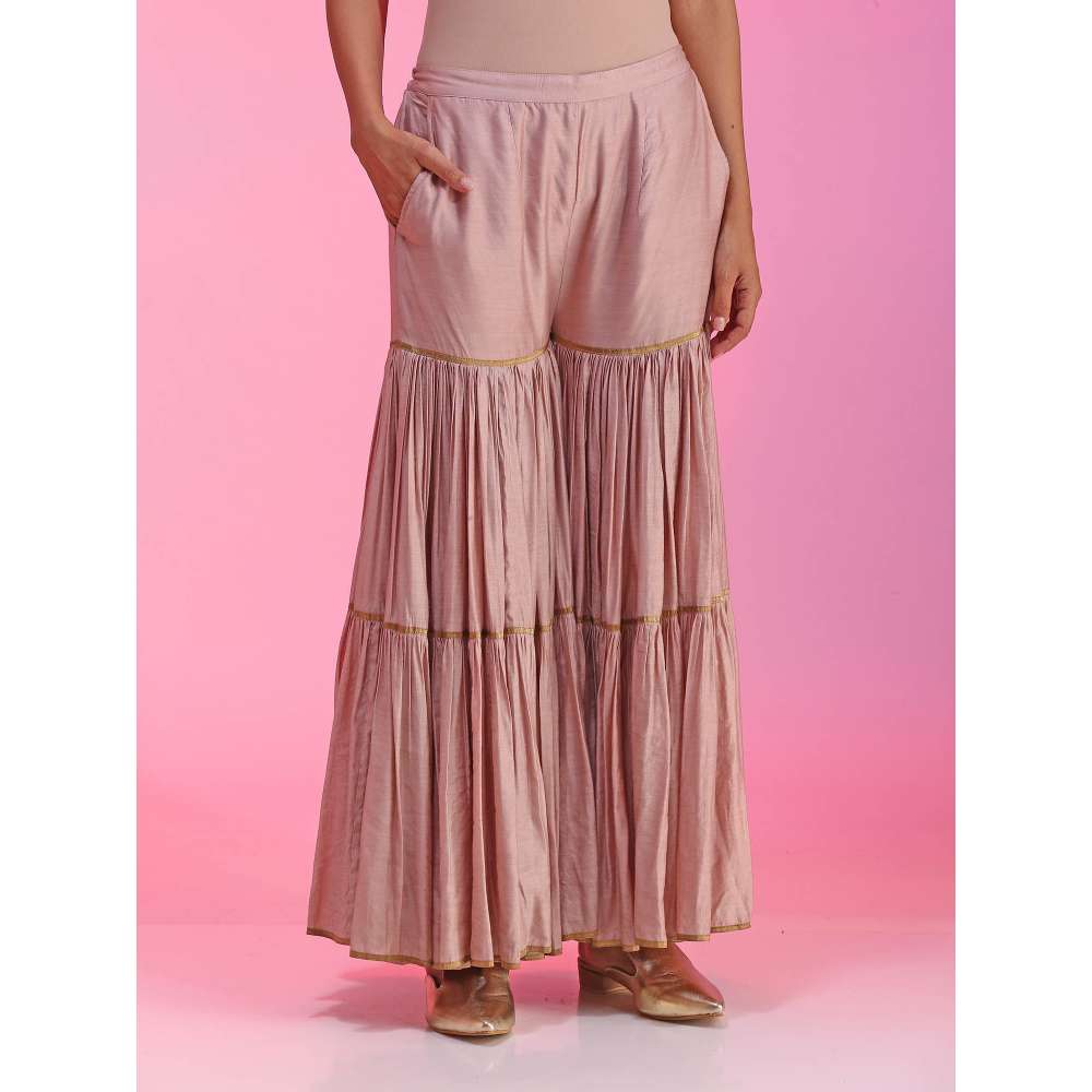 Kudi Pataka Designs Nadira-pi Pink Kurti With Sharara & Dupatta (Set of 3)