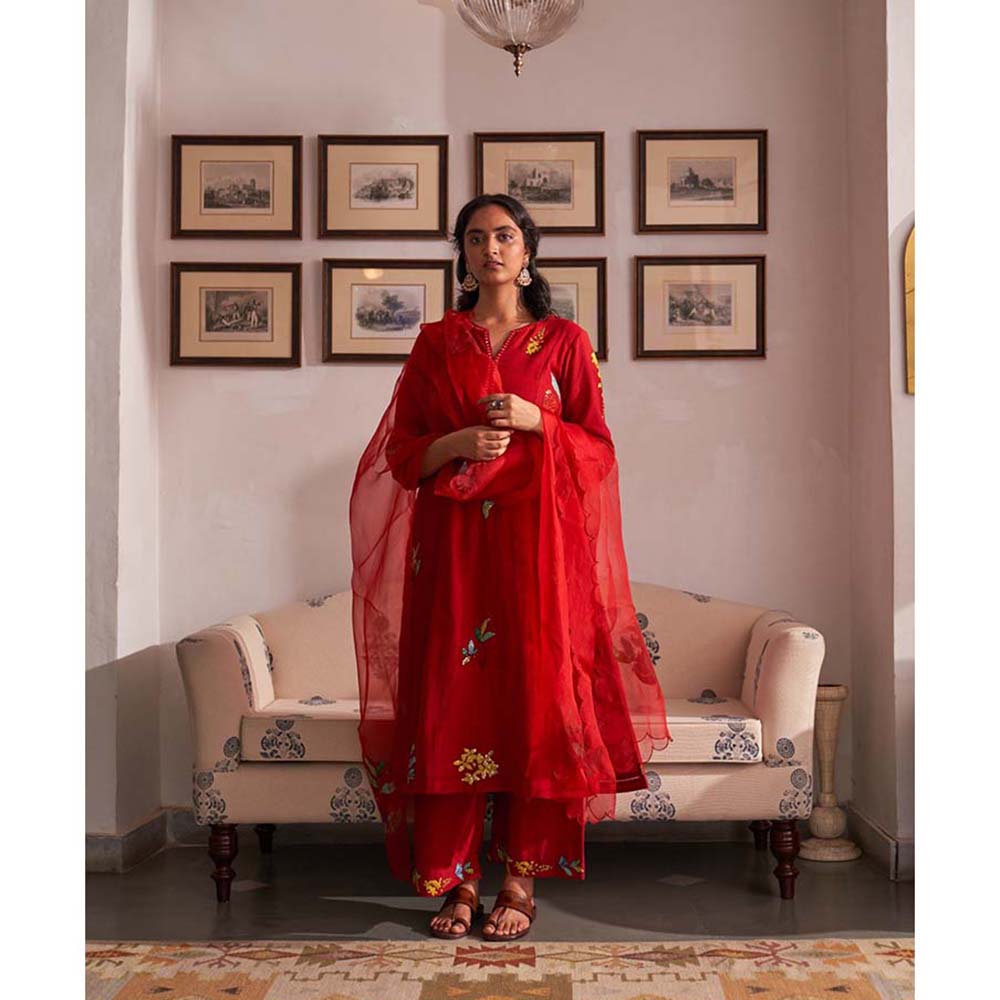 Label Earthen Gul Gurhal Embellished Kurta Pant with Dupatta (Set of 3)
