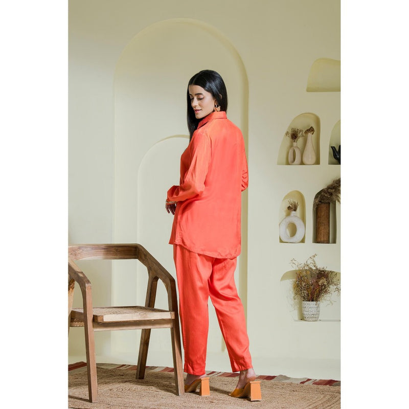 Orange Hand Embroidered Modal Satin Shirt