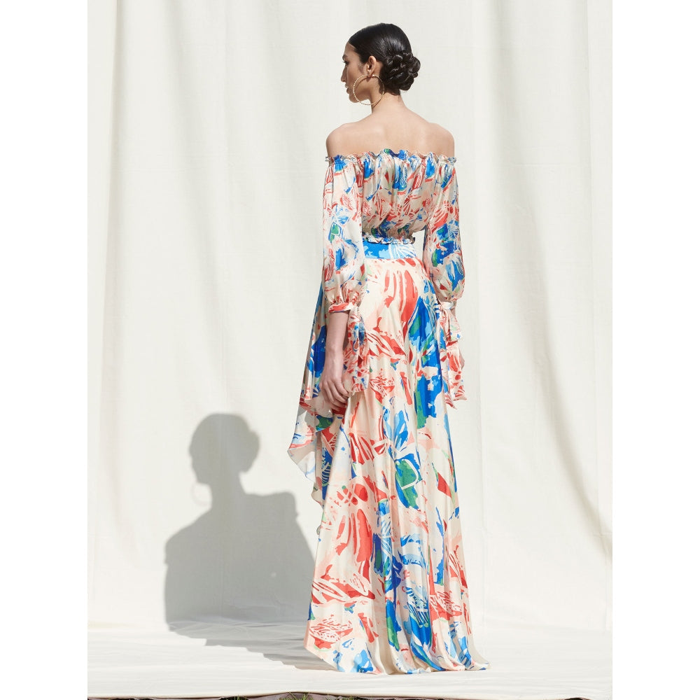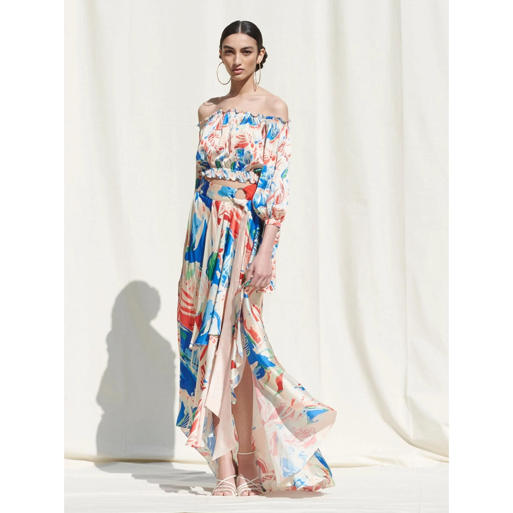 MANDIRA WIRK Drape Skirt Paired with An Off Shoulder Crop Top Multi-Color (Set of 2)