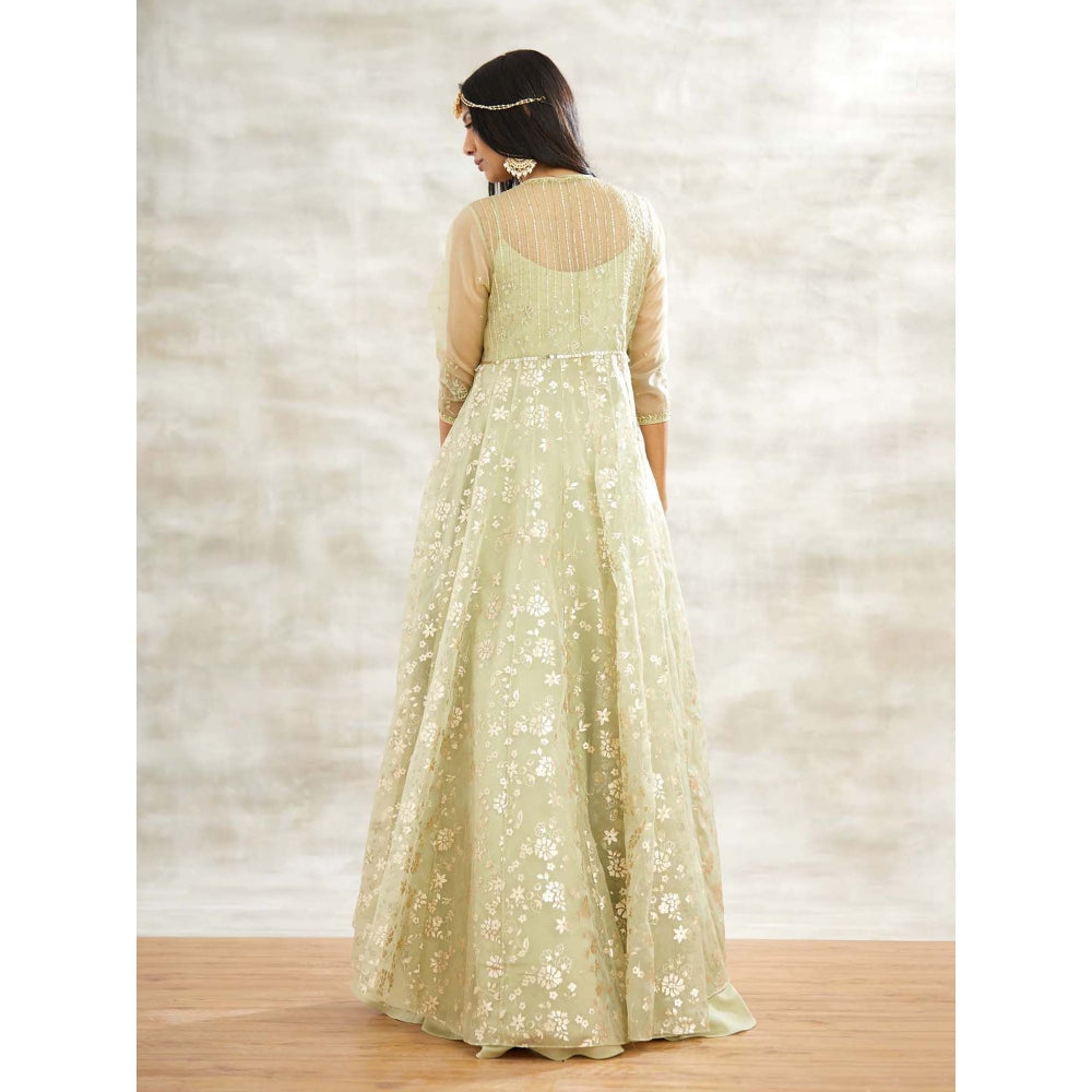 MANDIRA WIRK Green Embellished Gown with Jacket and Chudidar (Set of 3)
