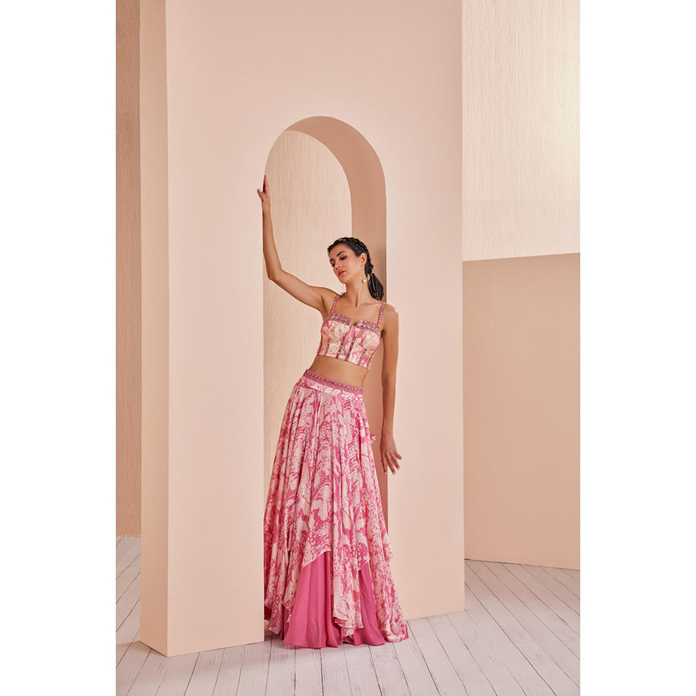 MANDIRA WIRK Printed Chiffon Lehenga Paired Up with Blouse and Cape (Set of 3)