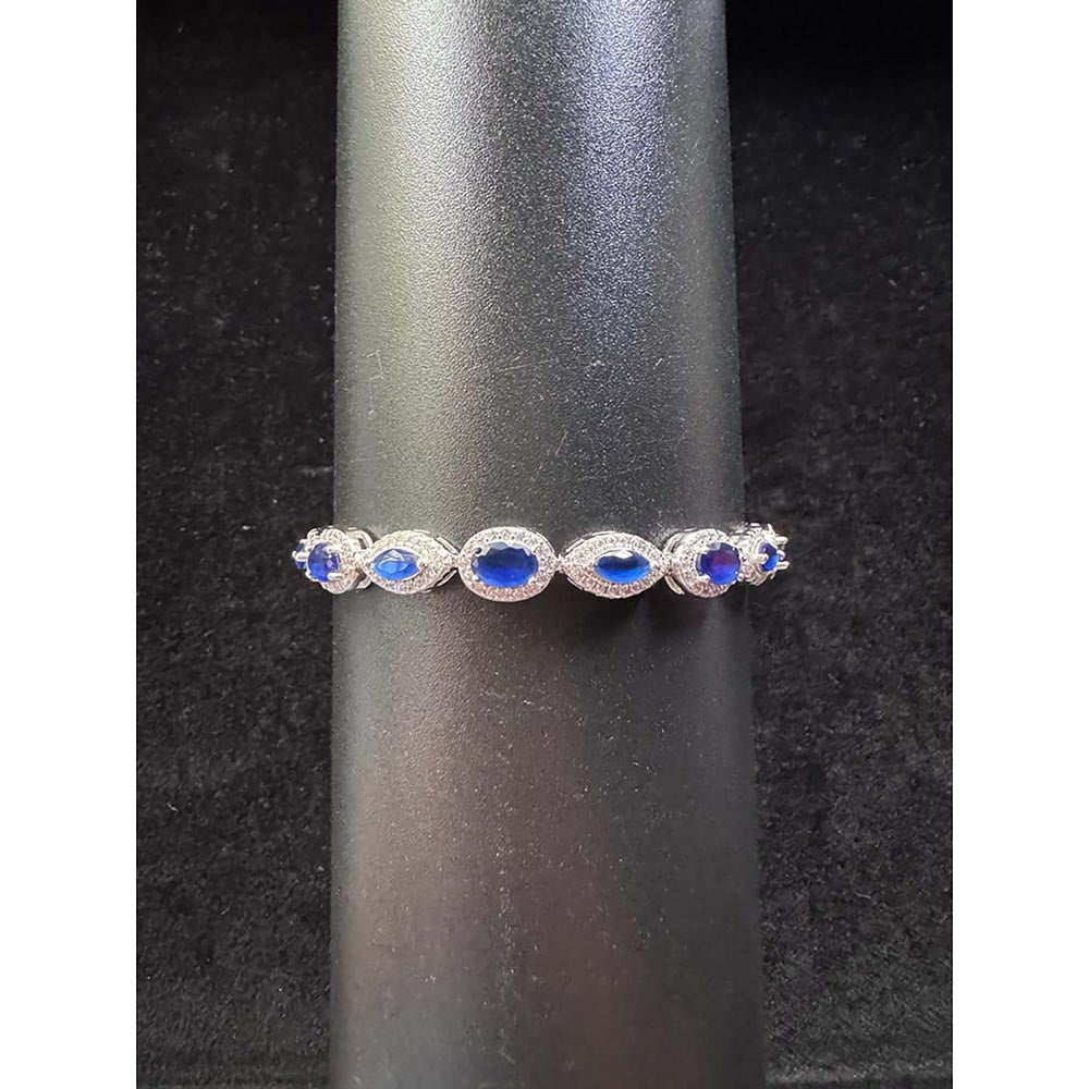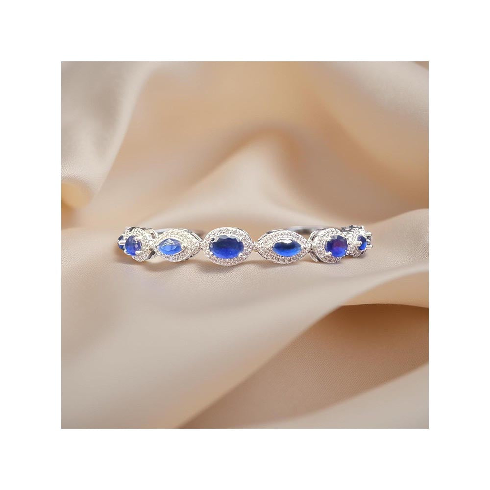 Description : This bracelet is the embodiment of style and beauty. The deep royal blue of the sapphires evokes serenity and strength, while the sparkling diamond halo adds a touch of brilliance that makes this bracelet truly stand out. Perfectly handcrafted for comfort and durability, it transitions seamlessly from day to night, elevating any ensemble with its royal and luxurious look.