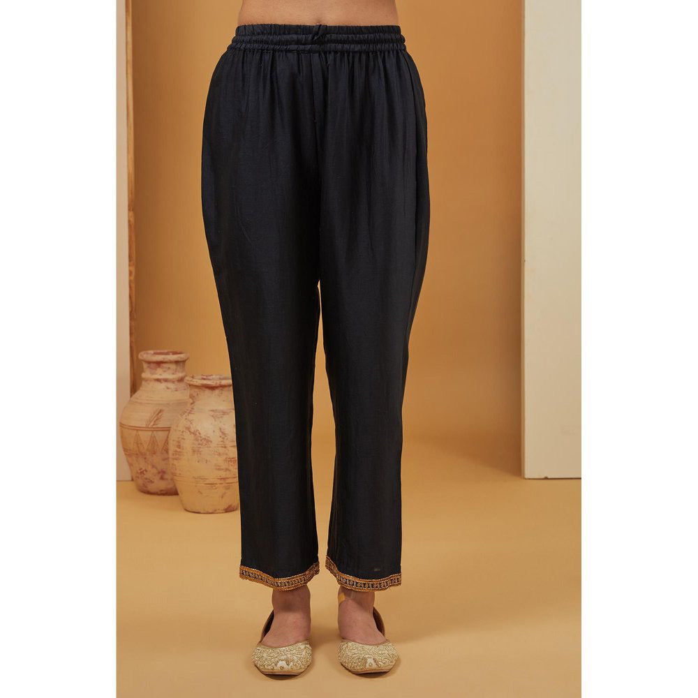 Description : Black Hand Embroidered Chanderi Silk with Pants and Dupatta