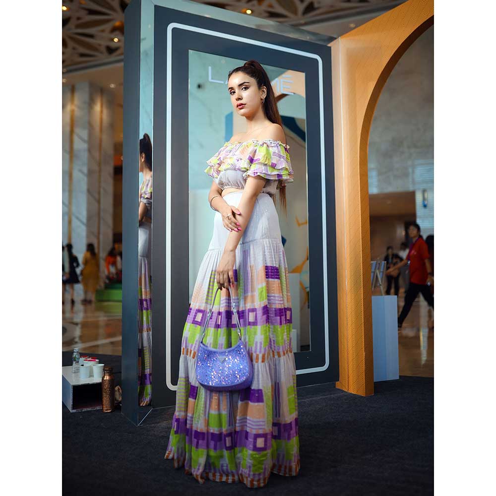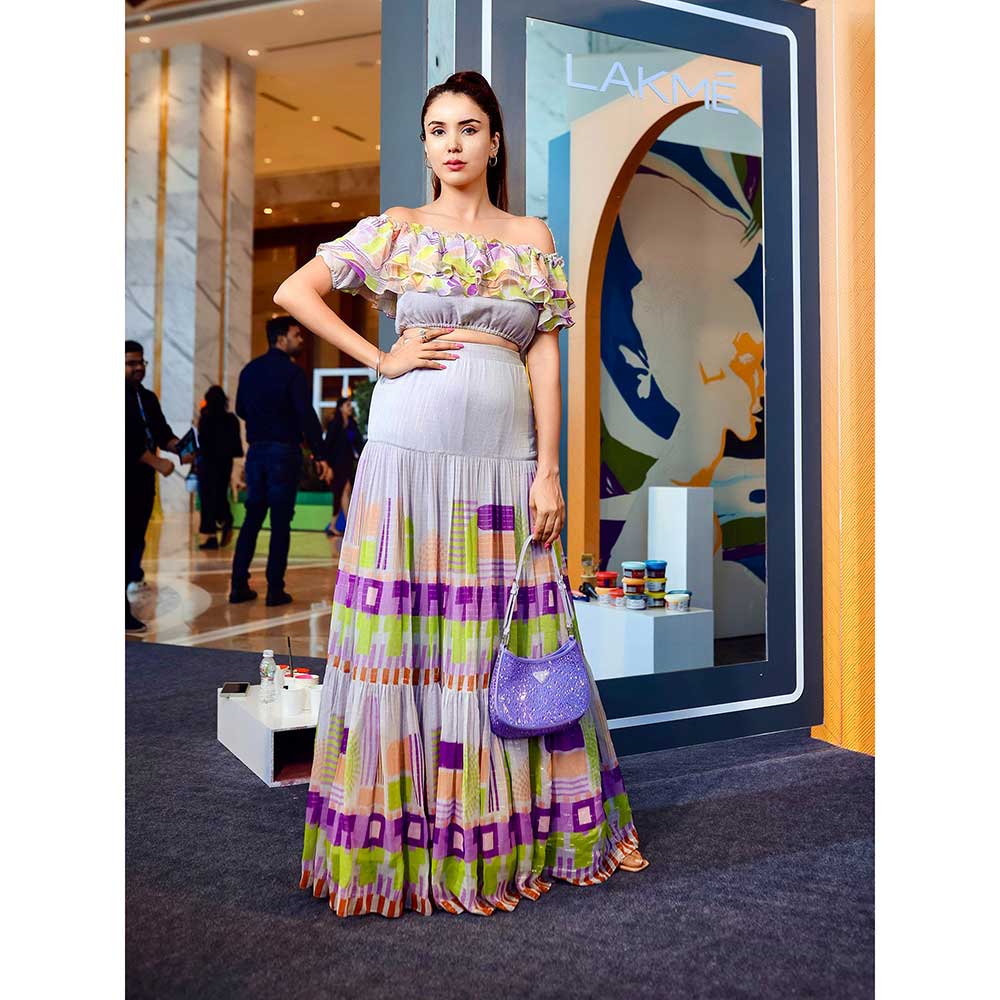 Description : Pump up your fashion with this multi-color skirt set from Nirmooha. Made from a breathable fabric, it is designed with an off-shoulder and ruffled sleeves. Tag with a pair of heels and minimal jewellery for a cute outfit.