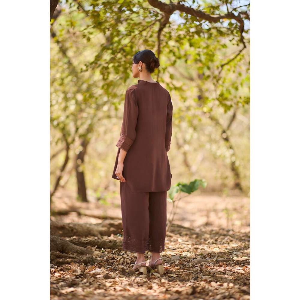 Nirmooha Rustwood Solid Lace Work Co-Ord (Set of 2)
