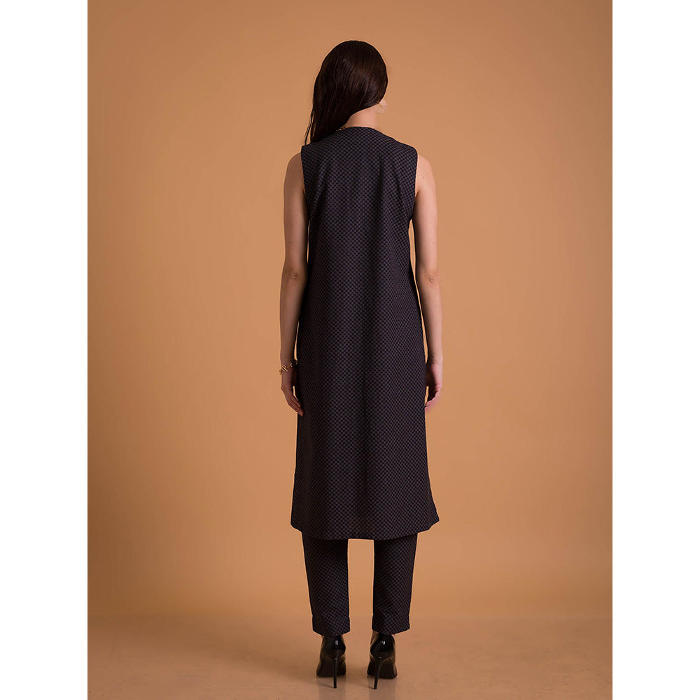 Description : All you need to look gorgeous in this black jacket pant from ORCR. It is crafted from high-quality fabric. It features black checks jacket pant which has half sleeves, round neck style. This outfit is perfect for any festive or special occasion.