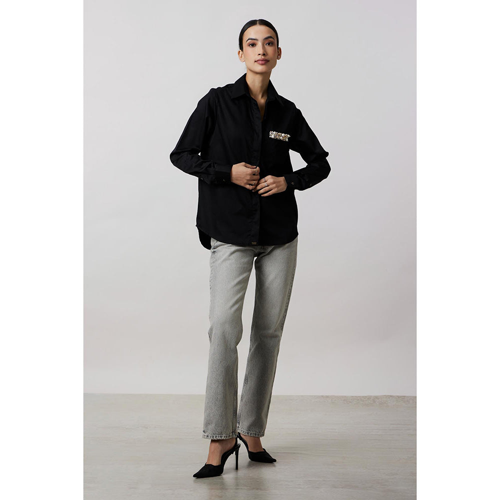 Pallavi Swadi Black Pearl Strip Pocket Shirt