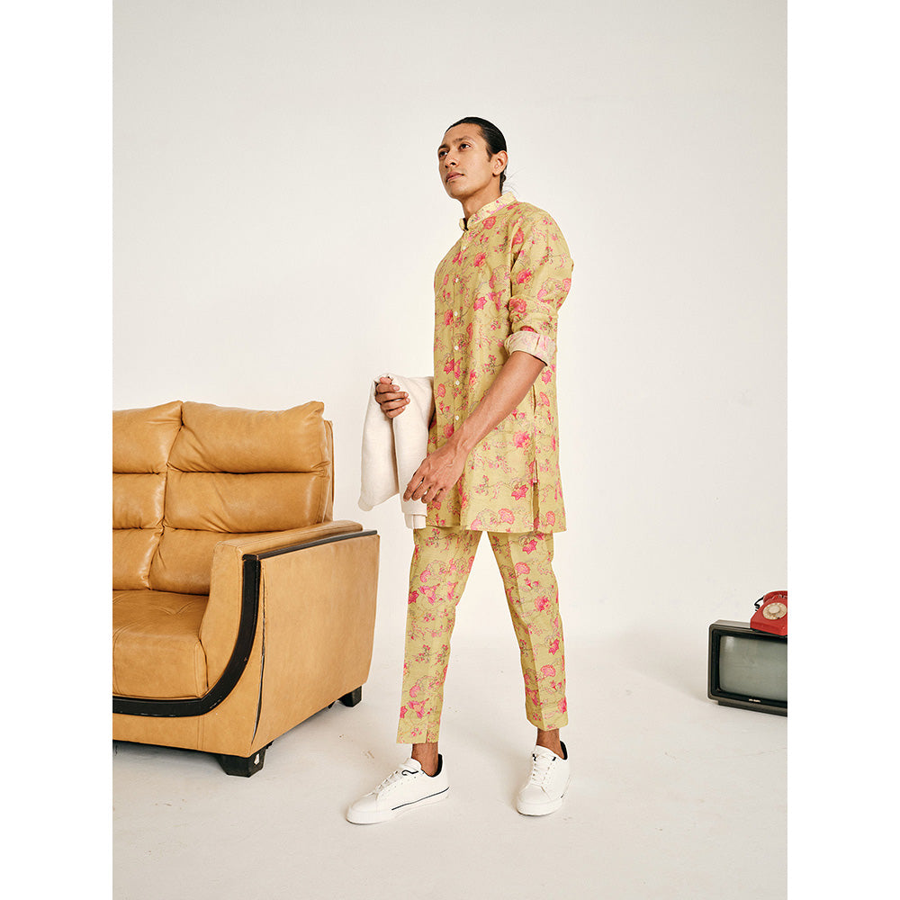 Description : The Lime and Pink Floral Rhapsody Kora Chanderi Kurta Pajama set is constructed with a lightweight but crisp chanderi fabric. The age-old floral jaal print dates back several decades and while it remains a classic, its colour palette keeps it fresh.