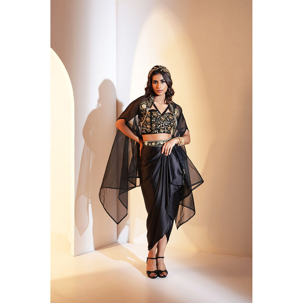 Rashika Sharma Aria Drape Skirt with Bustier and Cape (Set of 3)