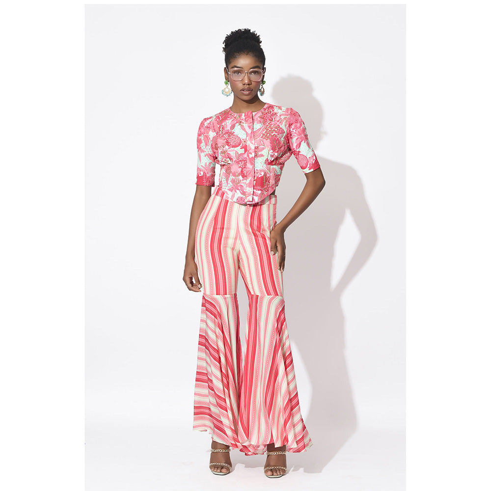 Description : Fabric CrepecolorRose Set Details 2-Piece Ensemble Includes Corset And Pants design Elements Hand Embroidery On Corset