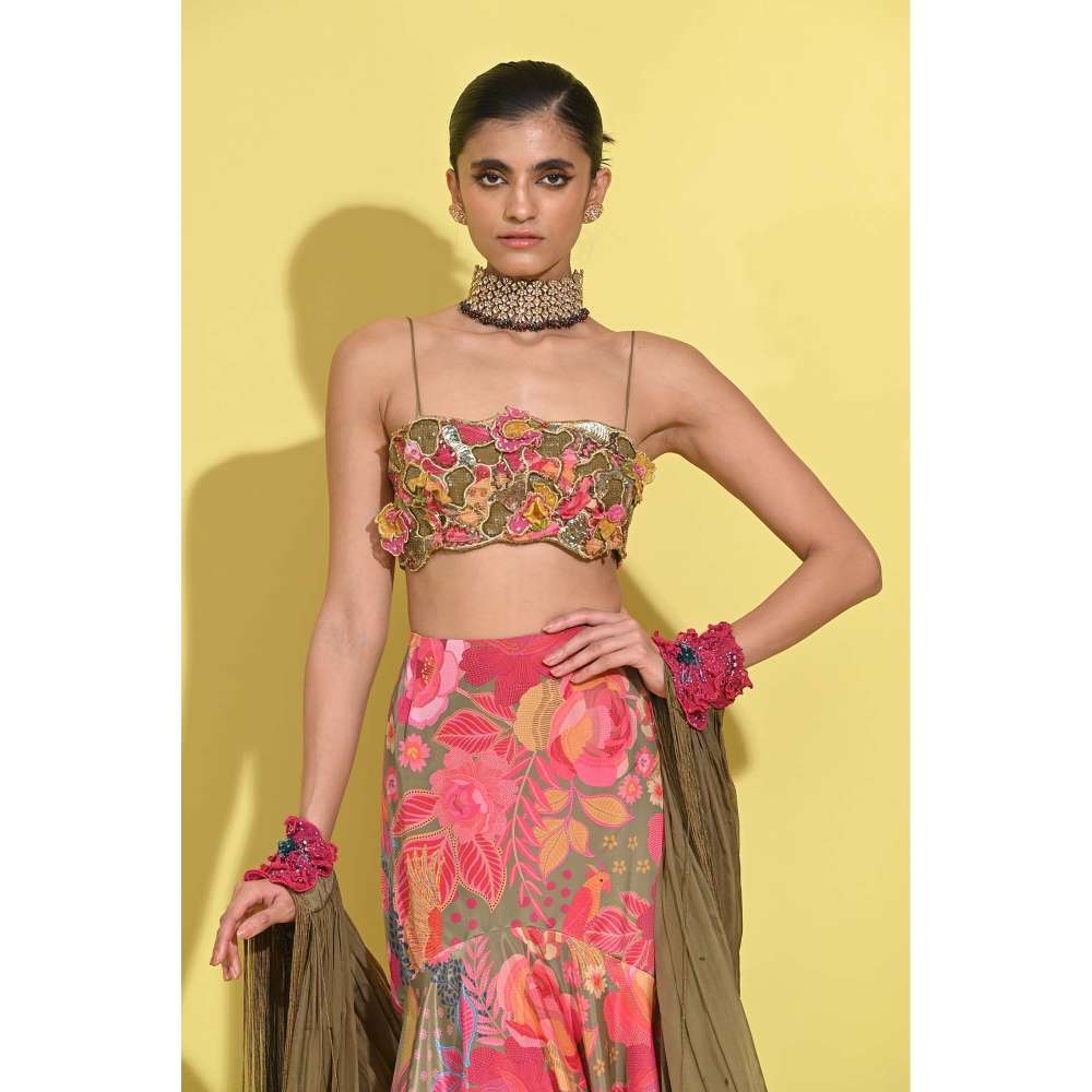 Rishi & Vibhuti Pink Mehroo Skirt with Blouse and Dupatta (Set of 3)