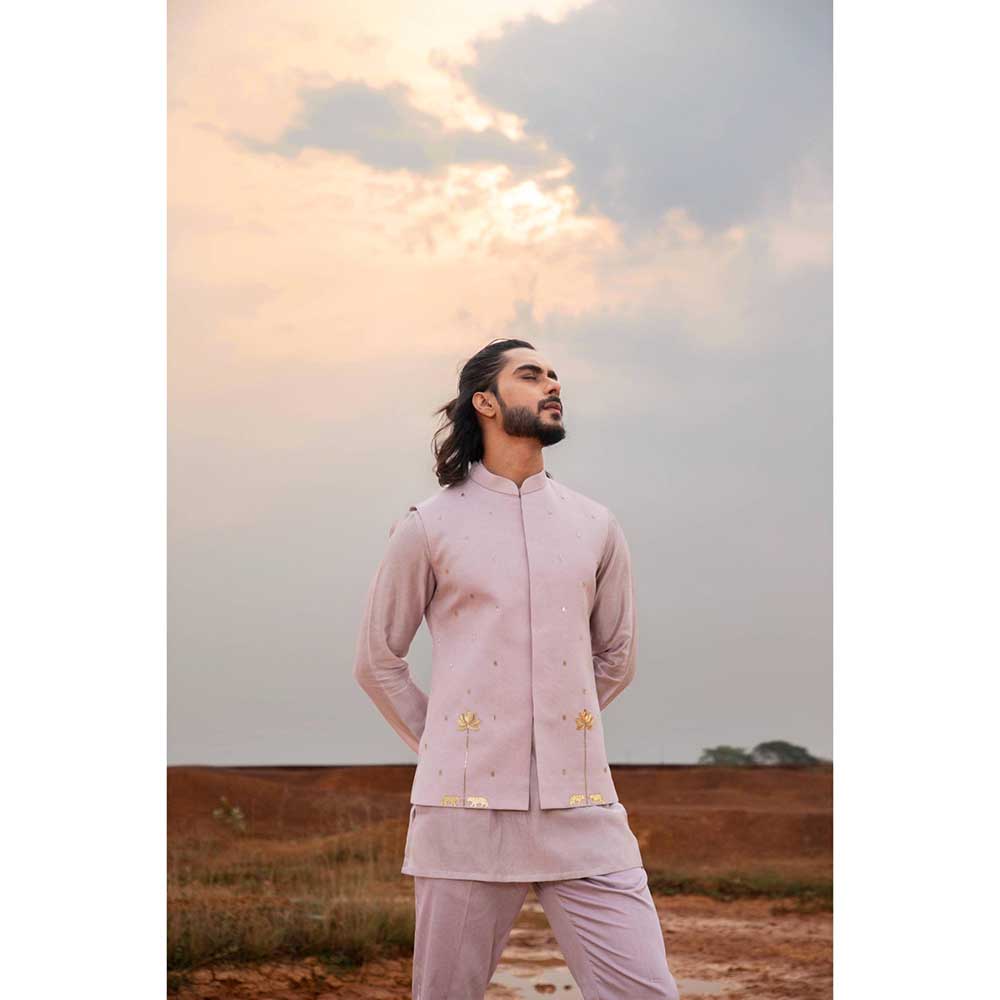 Runit Gupta Periwinkle Tiger Bundi Jacket with Kurta and Pant (Set of 3)