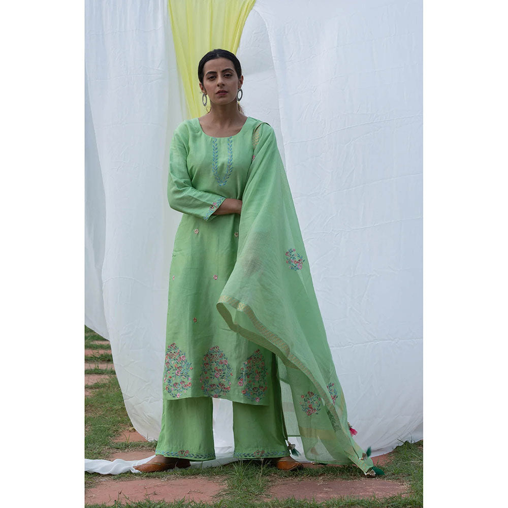 Chidiya - Green Kurta with Palazzo and Dupatta (Set of 3)