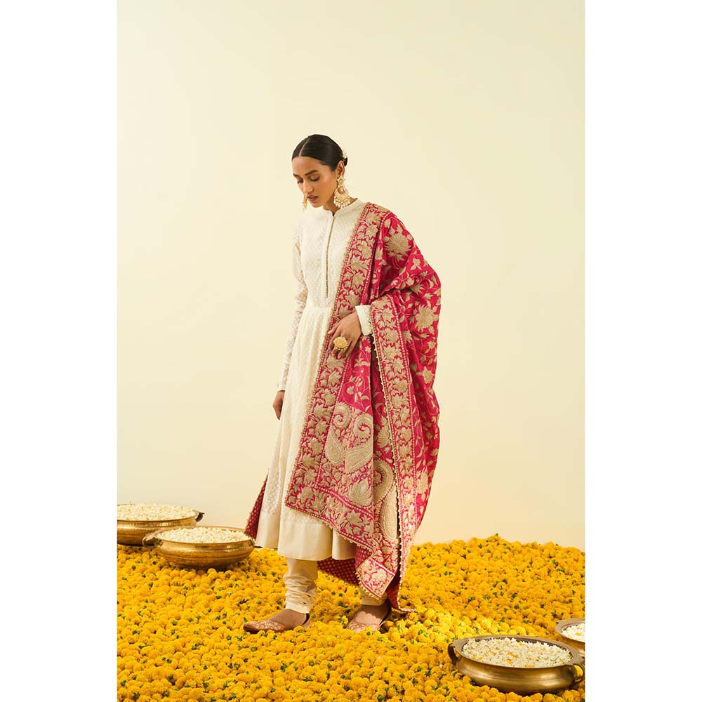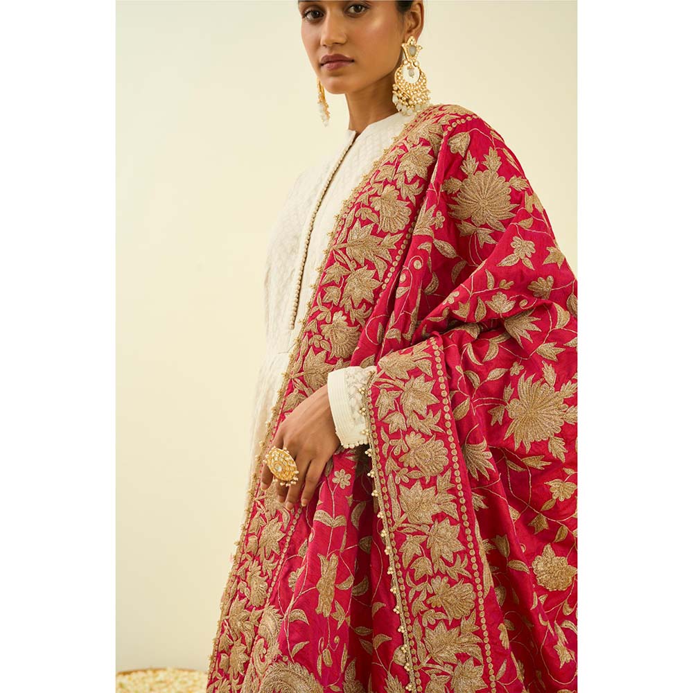 Sheetal Batra Hot Pink Floral Tilla Embroidery Dupatta