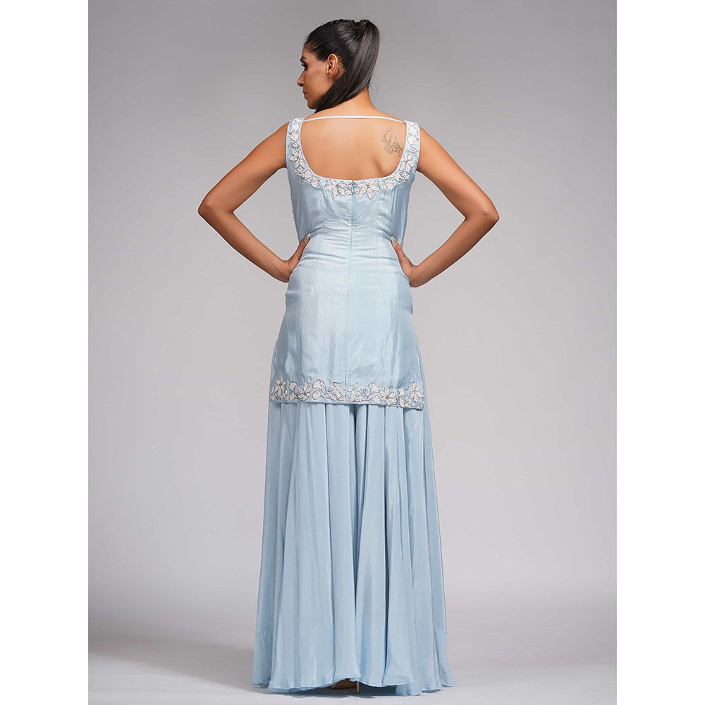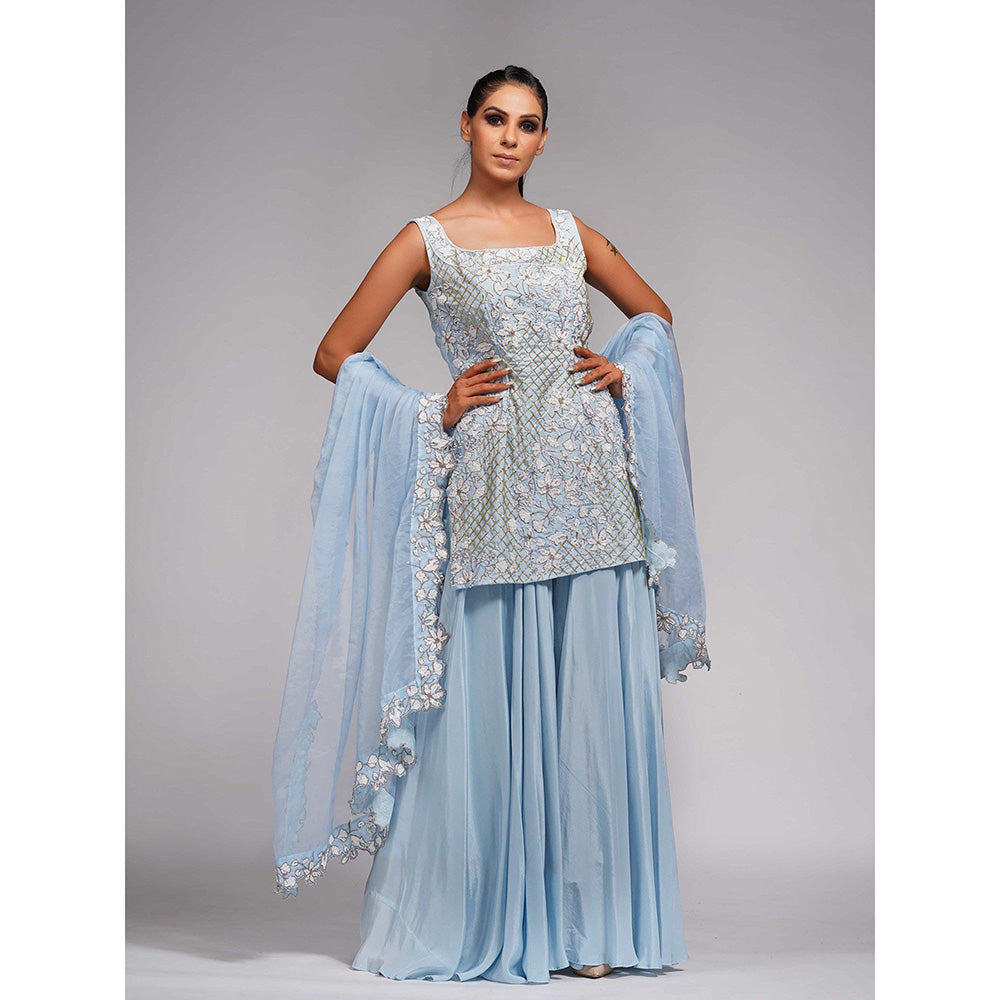 Shruti S Blue Embroidered Sharara (Set of 3)